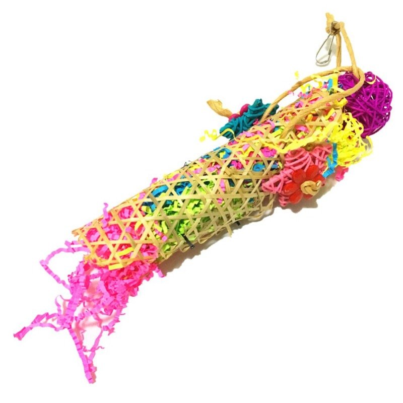 Bird Toy Hanging Bamboo Woven Cage Accessories With Rattan Ball Shredder Foraging Swing Toy For Parrot